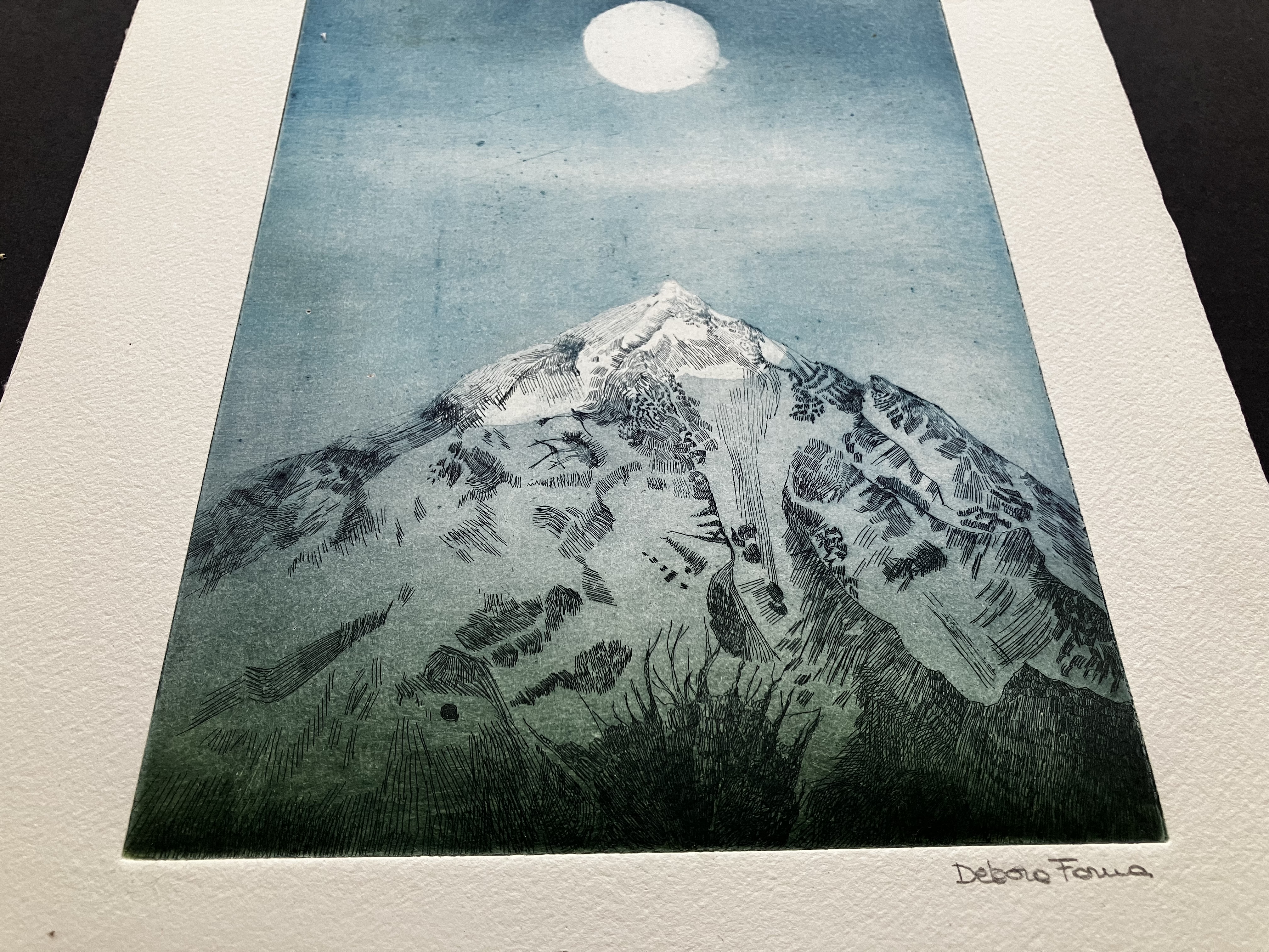 Incisione originale in edizione limitata, stampa d’arte. Acquaforte realizzata a mano , stampata su carta di alta qualità con inchiostro blu e verde. l’incisione misura 15,5 x23,5 cm ed è stampata su un foglio di 25 x 35. L’incisione è firmata e numerata.