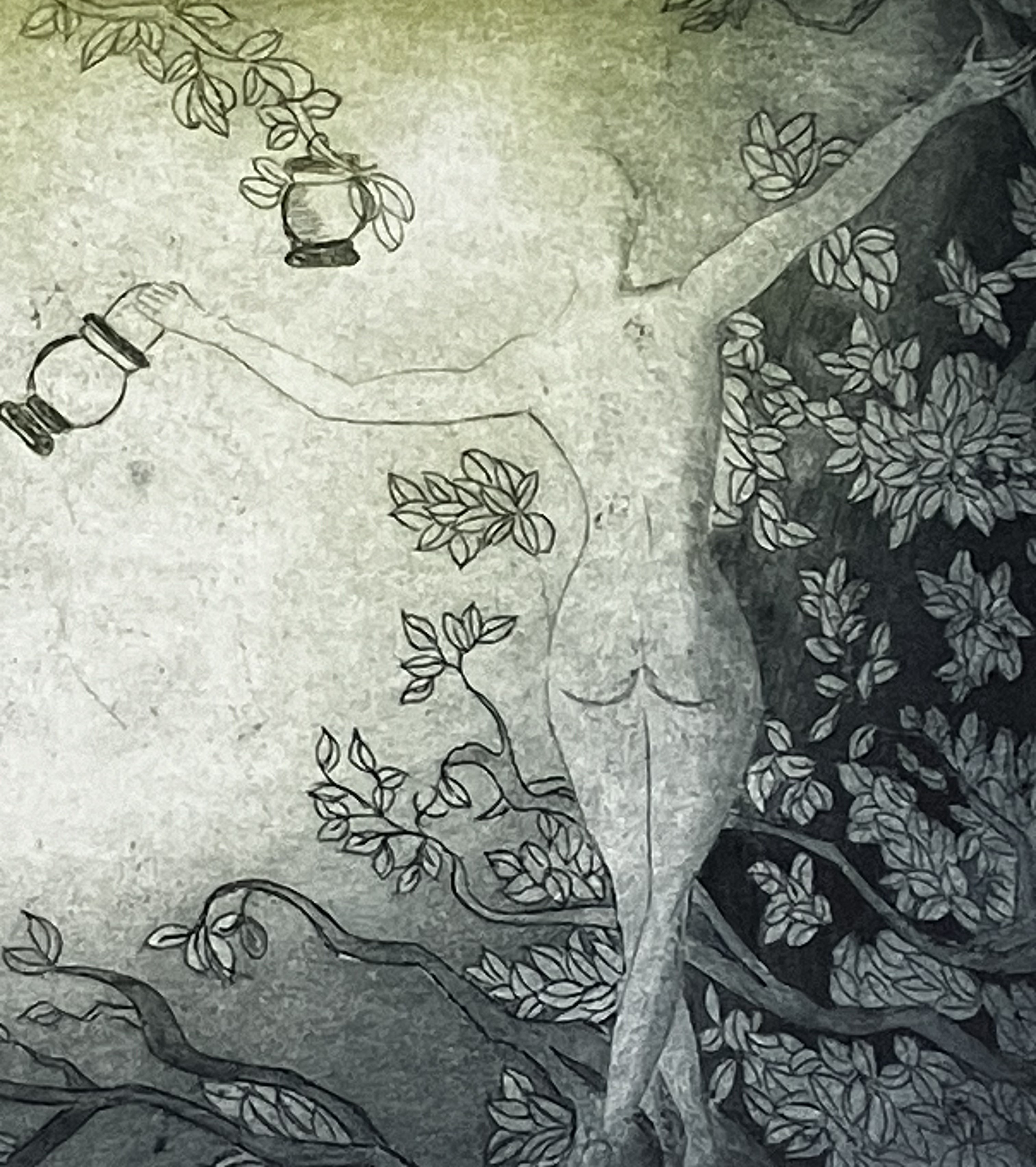 Incisione originale in edizione limitata, stampa d’arte, è realizzata con la tecnica dell’acquaforte, l’opera è stampata su carta di alta qualità con inchiostro calcografico nero, blu e giallo creando un un ‘atmosfera lirica, su un foglio di 35 x 25 . L’incisione è firmata e numerata.